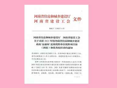 272022.01乐鱼·体育页面官方网站-乐鱼online(中国)焊工班组荣获“2021年度河南省住房和城乡建设系统‘安康杯’竞赛优胜班组”称号 -